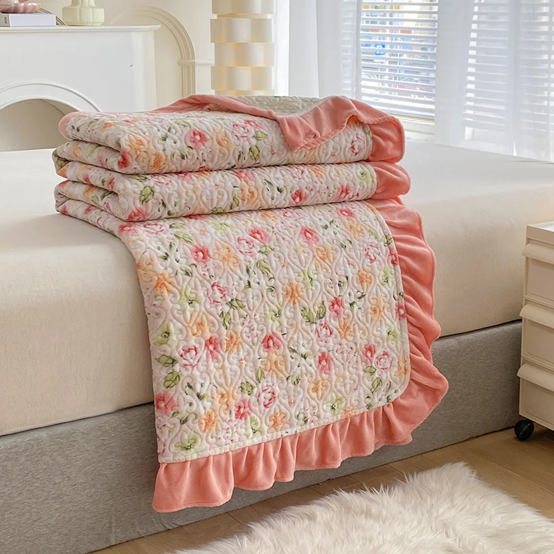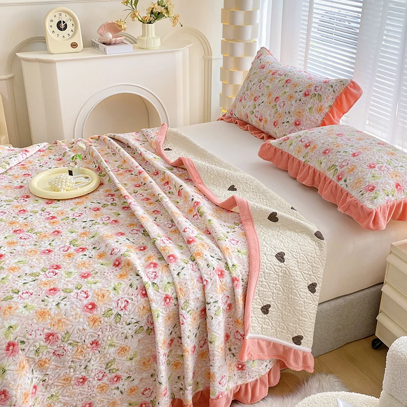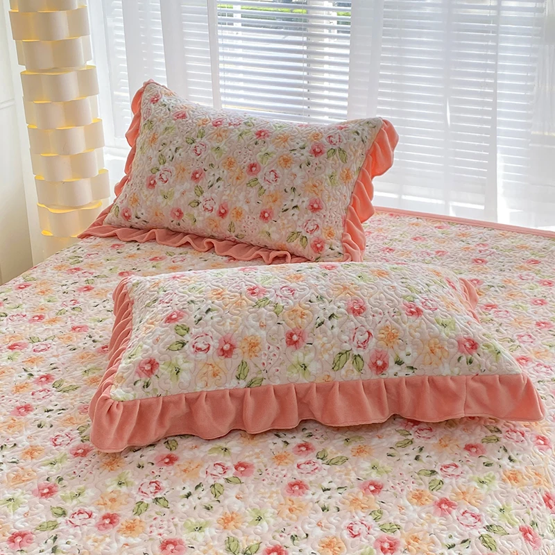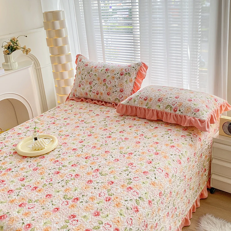 Factory Supply Quilted Floral Coverlet for Bed with Pillowcase Queen Ruffled Bedspread Set